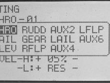 Photo #4 The name submenu. Notice the names are the same as in the MONITOR menu screen. RAIL, LAIL, RFLP, and LFLP are present, AILE and FLAP aren't.