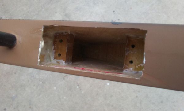 The aft block is up against the vertical spar. I have yet to round a spot into the block for the servo wire.