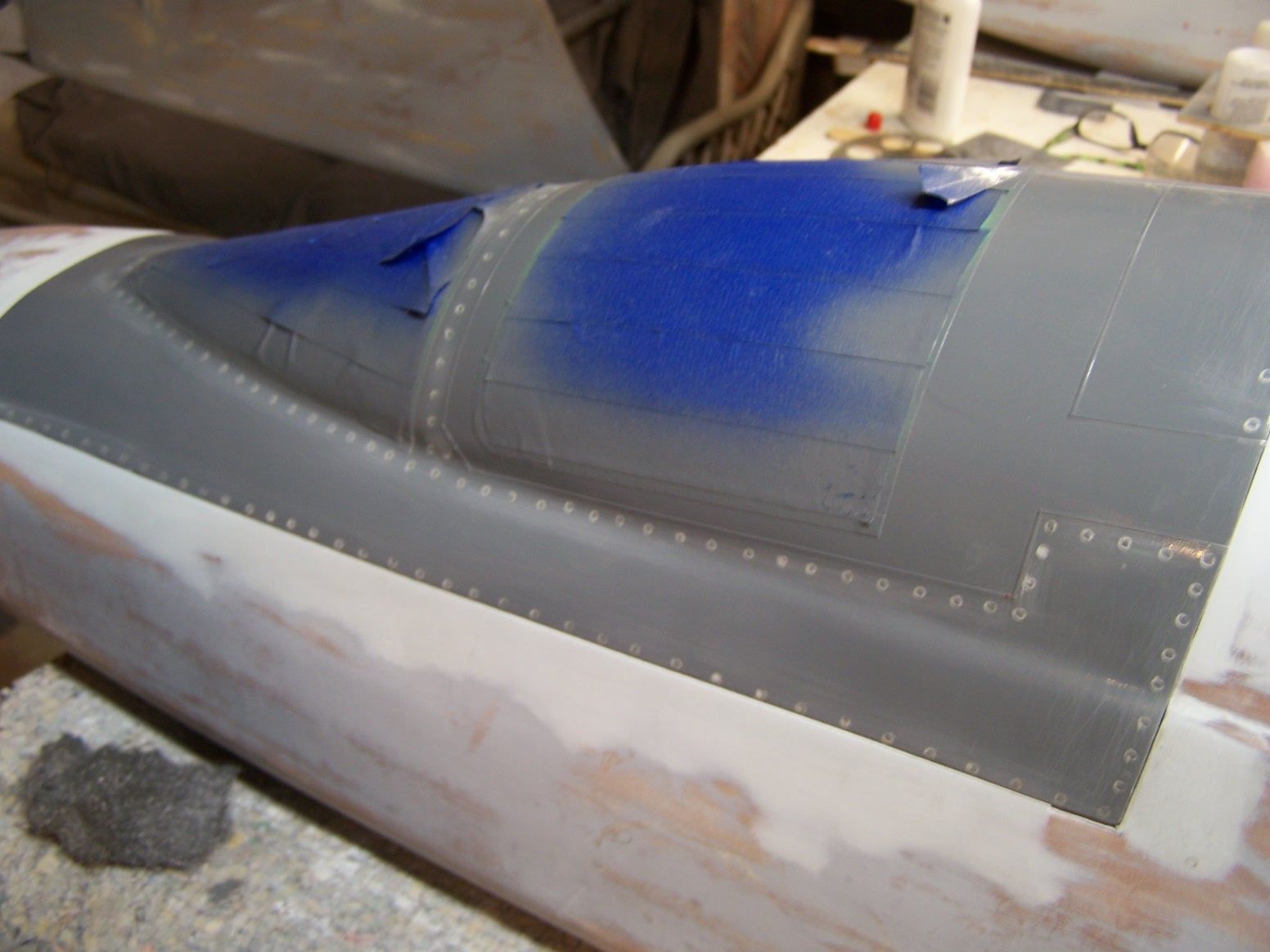I put some rivets on the hatch then steel wooled them. Then it will get another coat of paint